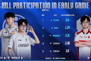 赛段至今场均对线参与击杀Tian高居第一,IG野辅位列二三